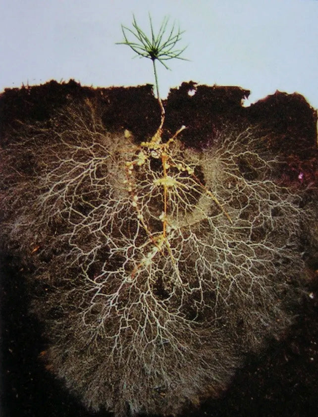 In natural landscapes and forests - dominated by large trees and lush vegetation - growth seems unstoppable. Here in nature, soils are dominated by dense networks of beneficial mycorrhizae fungi.